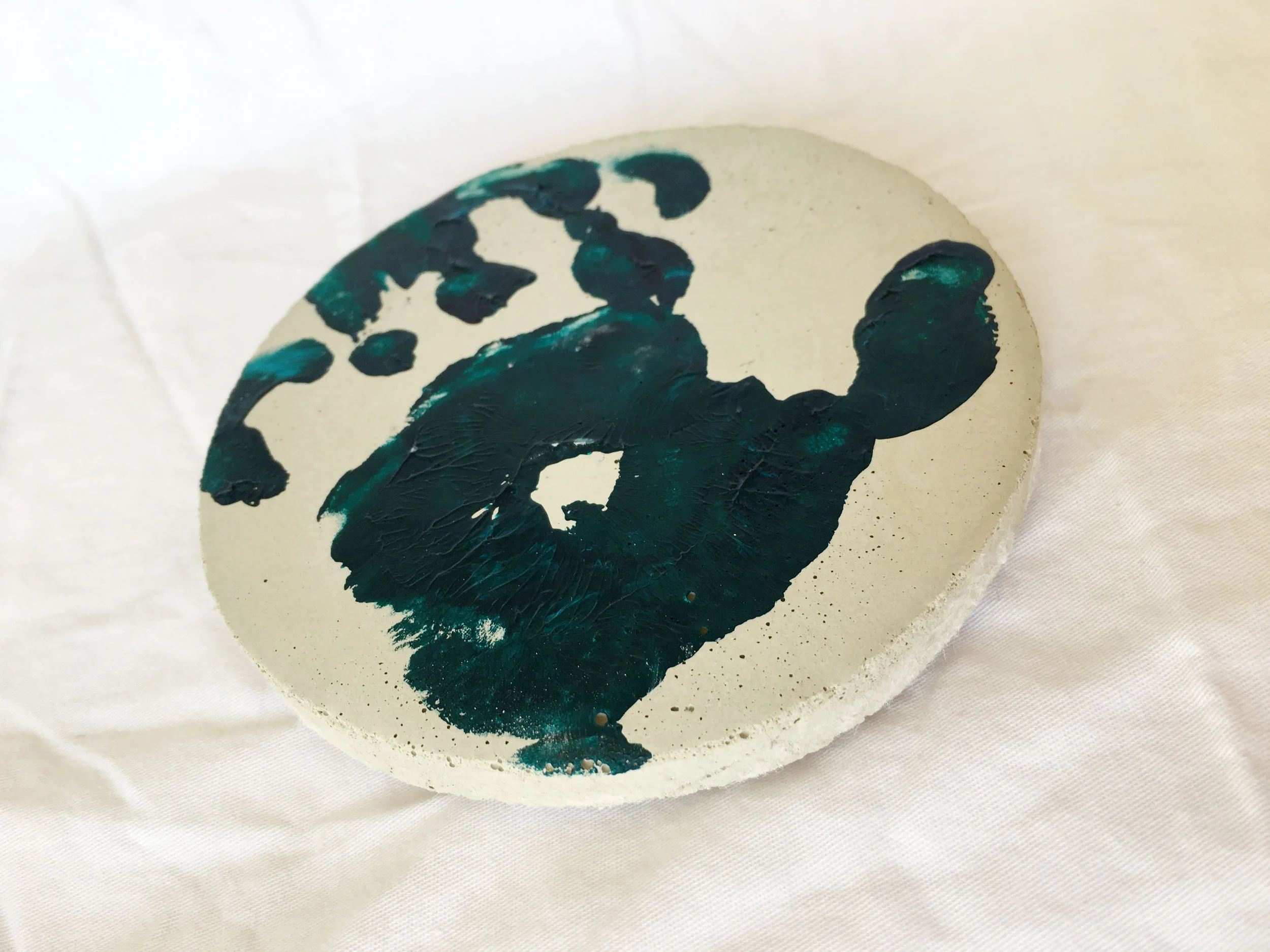 I also experimented with pouring concrete into the lids from ice cream containers. I thought they could be awesome coasters. Unfortunately they did not dry flat (the lids have a rim around the edges causing the top, flat portion to sag under the weight of the concrete, curse you gravity!). Being the thrifty one I am, I thought they would make cute garden stones. I painted Freya's hand and had her slap it on each one to gift to her grandparents. All of her grandparents are avid gardeners, how lucky is that! They turned out cute and by the last one, she was starting to understand the concept and didn't wiggle her fingers as much. They are not perfect, but hopefully they make her grandparents smile every time they go out to work in the garden.