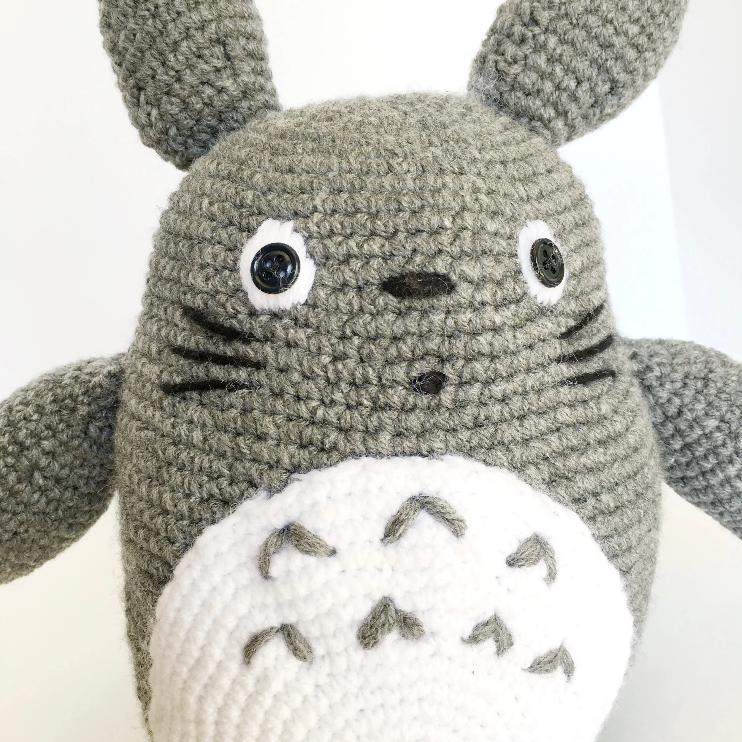 This is one of my oldest WIP projects. I started it when I first learned how to crochet, which was ... counting on my fingers ... maybe eight years ago. I don't remember the exact moment I started this project but we can say it was seven years ago. Although this Totoro was in WIP-land for a seriously long time, he would come out every now and then and get a little work done. All I needed to do to finish him these past few years was to stuff his arms and tail, sew them on, and stitch the details on his tummy, whiskers, and mouth. Why did that take me four years? There is no good answer. Thank goodness for this blog and how much it has motivated me to finish all of my sad and forgotten projects. I have gotten a lot better at amigurumi since I started this Totoro, and even though he sits a little crooked and is not perfect I still love it. I can not find the pattern I used to make him, but I found a similar pattern here (it could actually be the same pattern just rebranded and published since I last used it, I'm not sure).