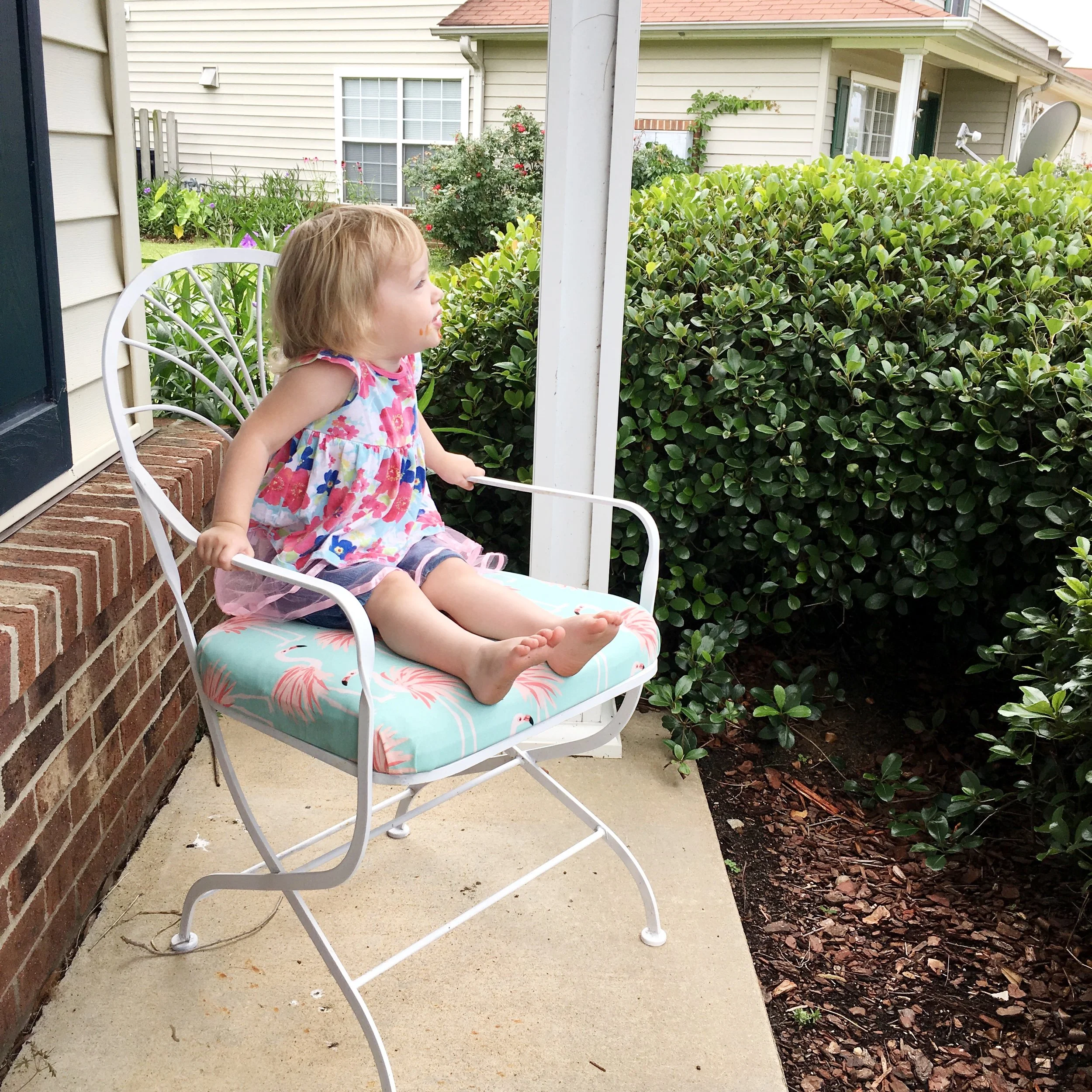 A couple of weeks ago on garbage night my husband and I noticed our neighbors put out two patio chairs next to their cans. Jake looked at me and asked, "Are they throwing those away?" "I guess so." He got pretty excited and ran over there to ask if we could take them.