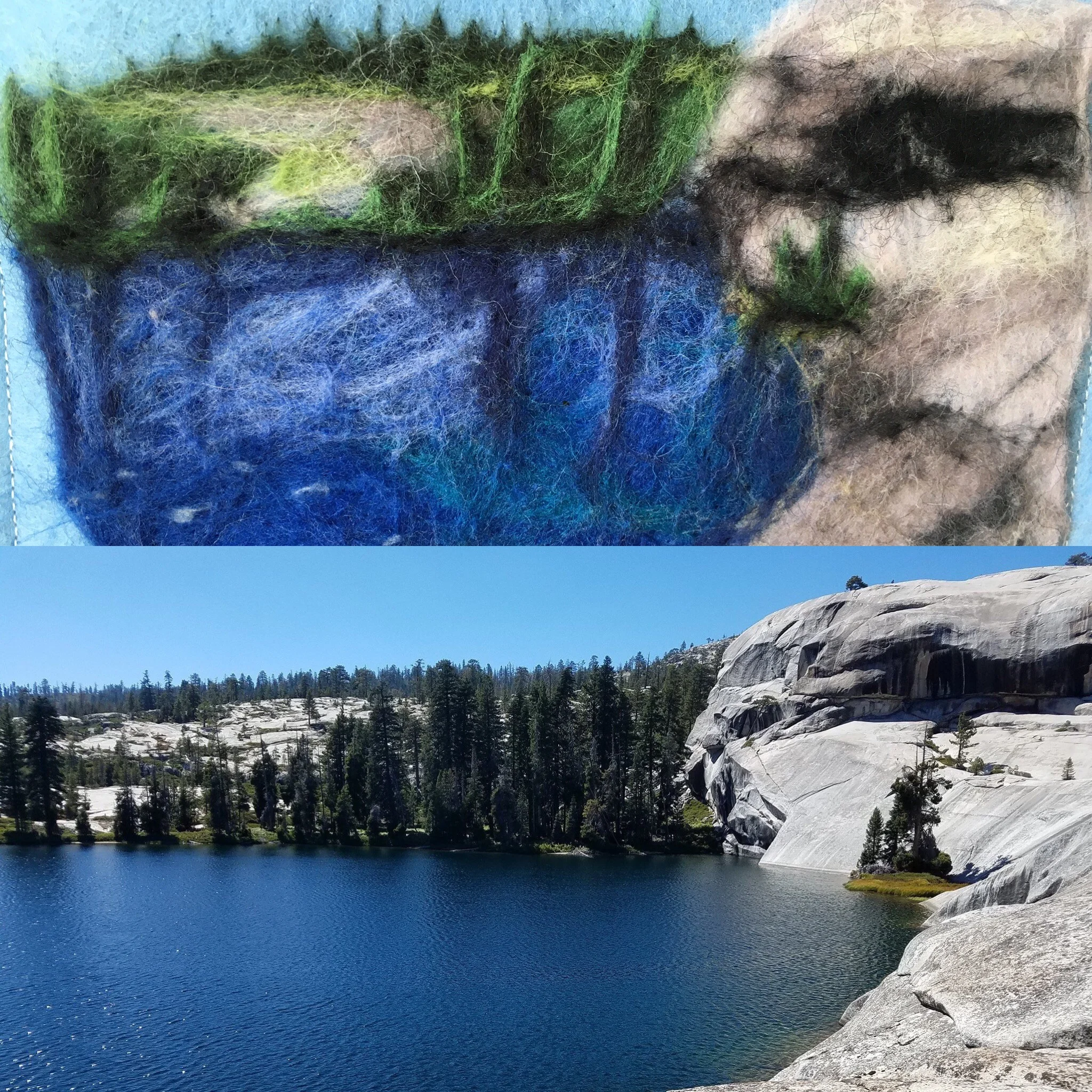 The process for the landscapes is exactly the same as the dog portraits. I read somewhere online to wet felt it (soak in hot water and rub with soap to felt the fibers together) after the first base layer. I tried it with these landscapes and it did nothing for me. It just shifted things around a bit. Next time I try another landscape, or any wool painting, I will stick with the original method.