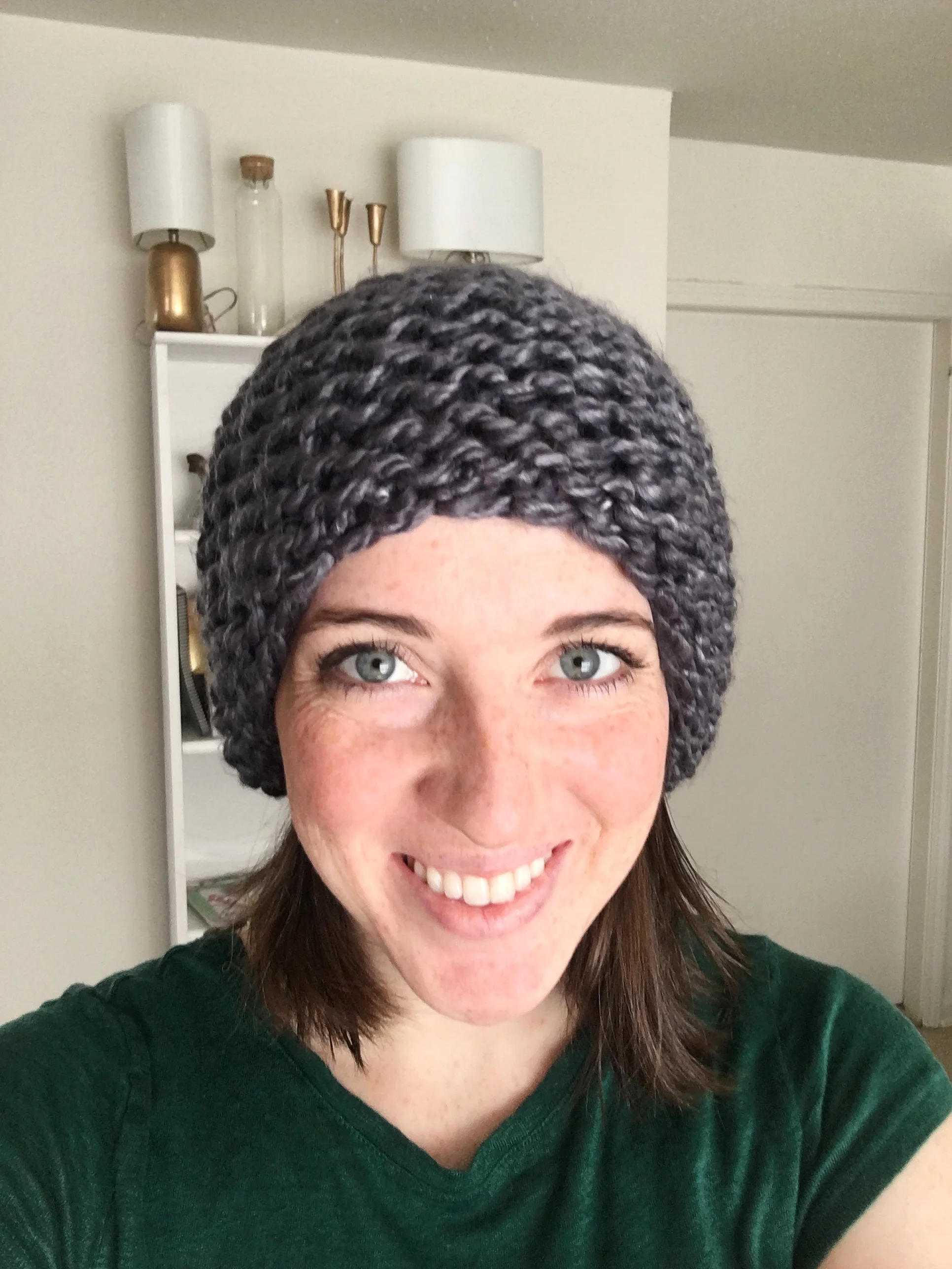 I knit another hat this week. Theoretically it was suppose to be for Jake but when I finished it and had him try it on, we both decided that it did not quite suit him. Oh well, it looks good on me! I will have to try another pattern for him. And maybe not bulky yarn. I think the over-sized stitches give it a feminine vibe. Just my opinion though.