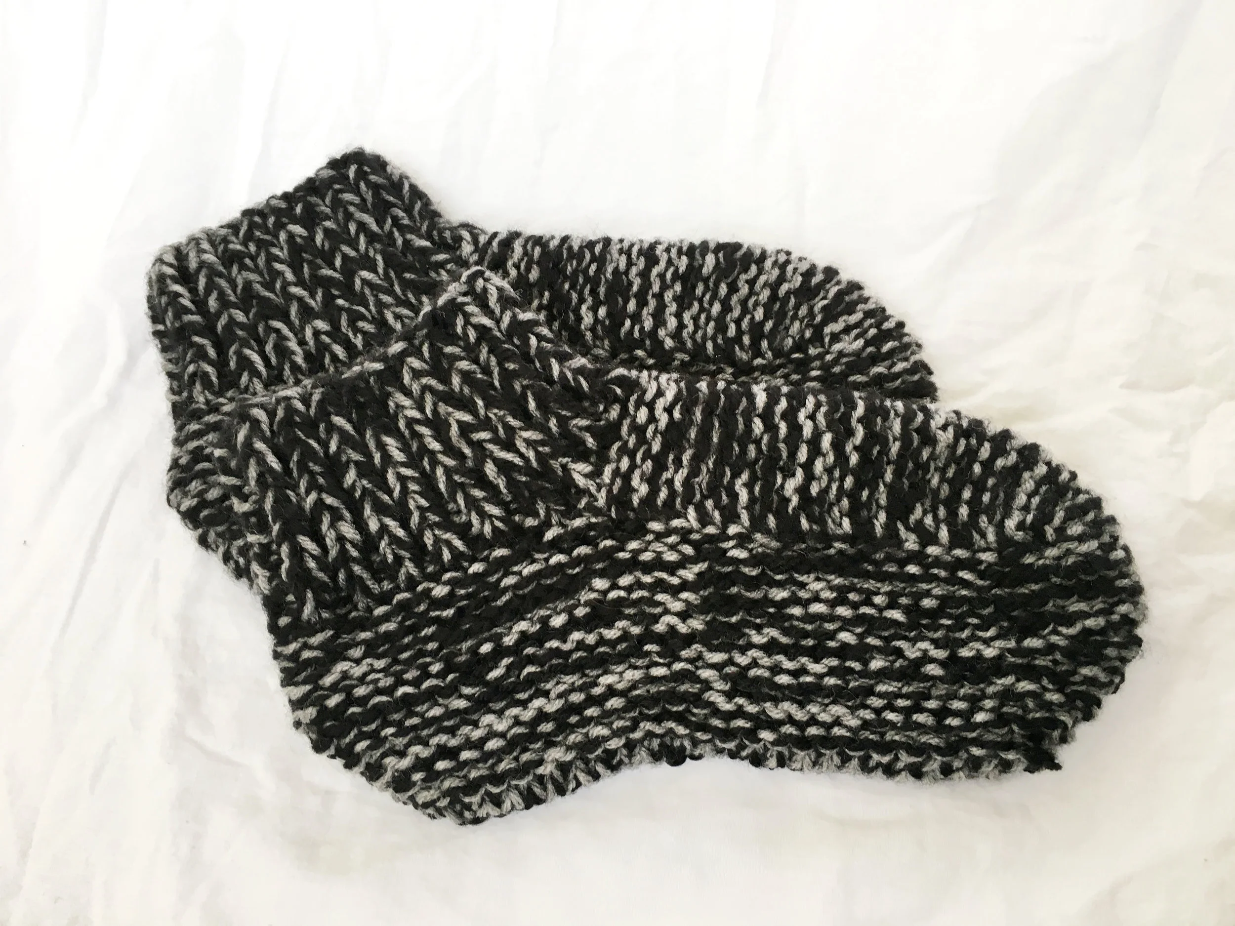 Last year I accidentally gave my brother two Christmas presents. One gift was a pair of slippers that was suppose to be for my sister. Oops. No matter how organized I think I am, I always seem to mix up somebody's presents. He was surprisingly excited about the slippers (even thought they were pink), but also played it cool and handed them over to my sister. I wasn't actually there, but they all told me about it. This year, to make up for it, I made my brother his very own pair of slippers. And I made them as manly as I could. Finding manly patterns is very hard. The pattern I used is great and very versatile. It knitted up quite large and my brother has huge feet so that is perfect. Now I can finally be at peace knowing my brother has slippers too.